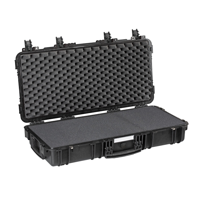 EXPLORER 31 inches long, black waterproof case with pick & pluck foam layers.