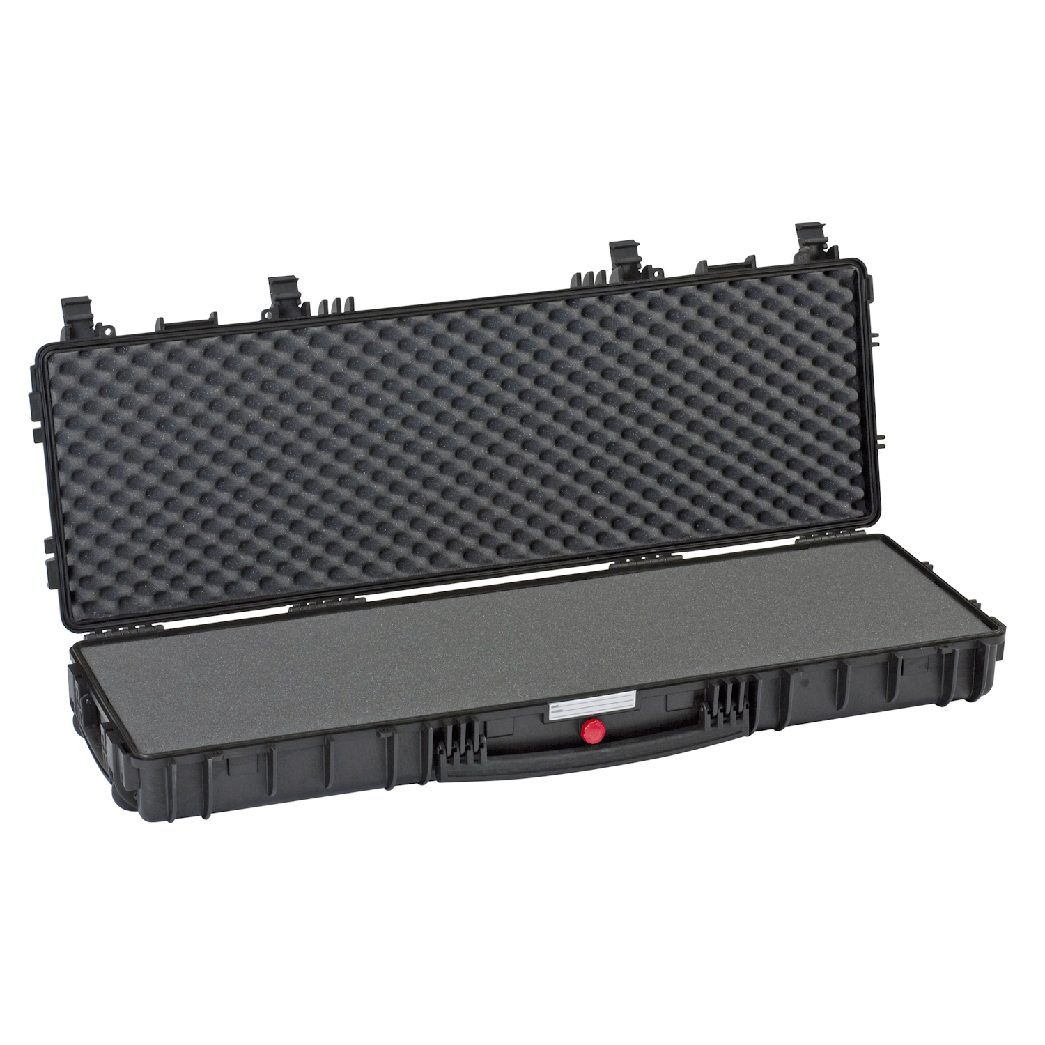 RED by EXPLORER 45 inches long, wheeled, black waterproof case with pick and pluck foam layers, ideal to store, protect and carry long item and accessories.